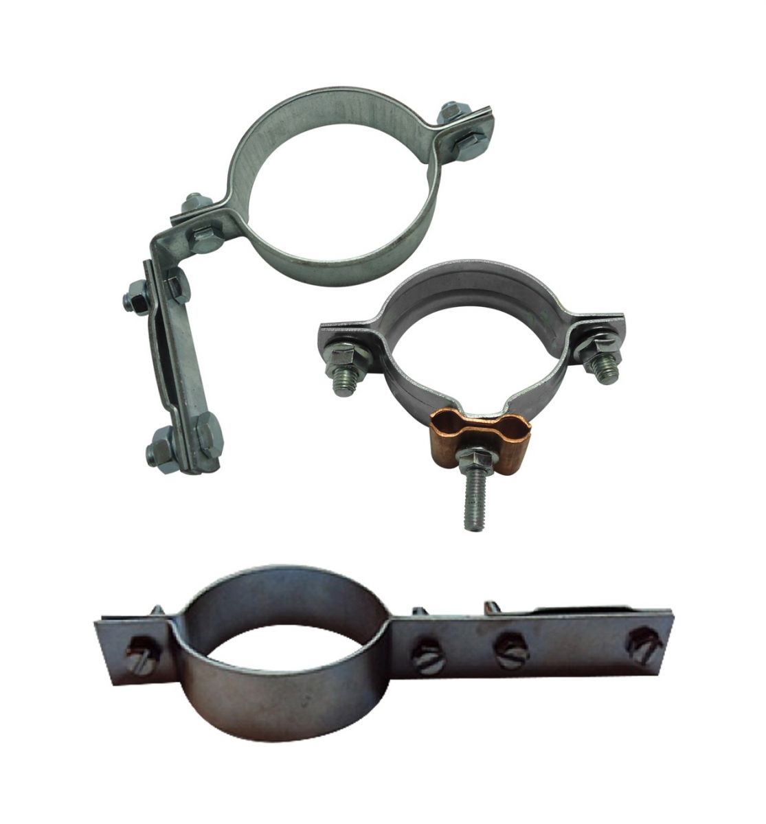 Pole Type Fixing Clamp : Used to fix galvanized tape strip to pole.