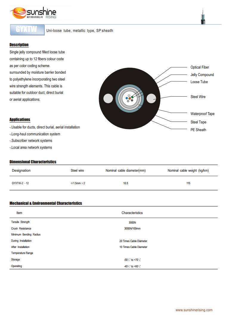 GYXTW Uni-loose tube, metallic type, SP sheath