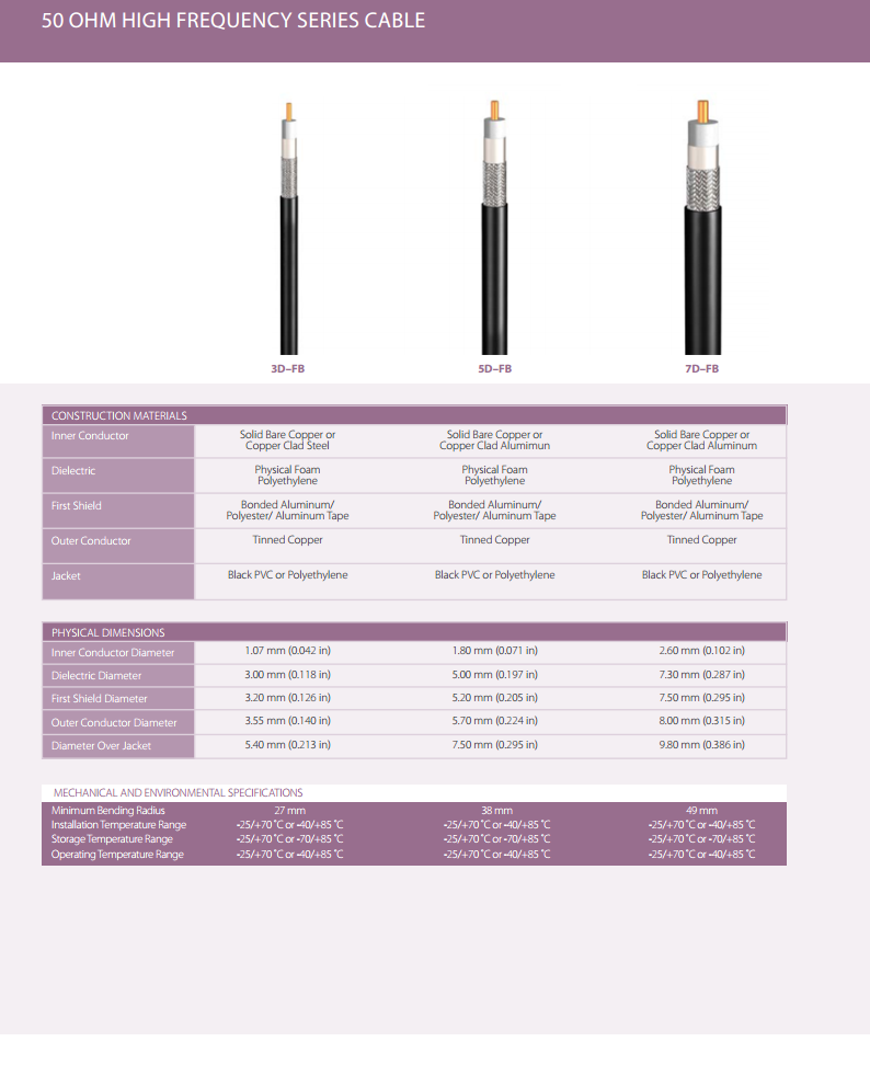 50 Ohm High Frequency Series Cable