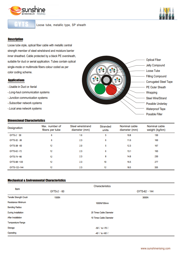 GYTS Loose tube, metallic type, SP sheath
